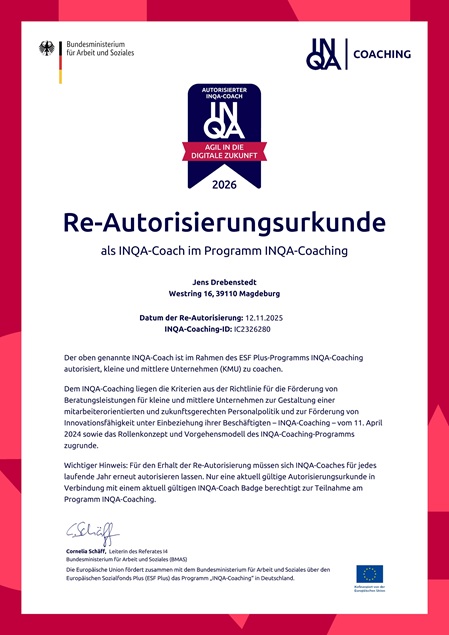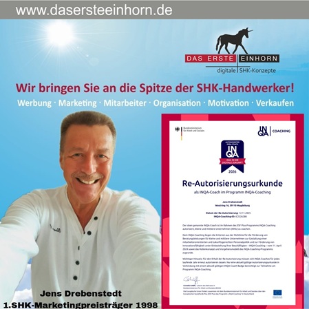 Für alle KMU (Sanitär, Heizung & Klima-Betriebe) gibt es eine neue Förderung vom Bundesministerium für Arbeit & Soziales, um z. B. das Thema Mitarbeiterbindung & Mitarbeiterfindung effizient umzusetzen. Mit dieser Förderung können KMU eine Förderung von bis zu 14.400,- € erhalten (davon muss 20 % als Eigenanteil geleistet werden). Bis dato gab es die Bafa-Förderung und das waren nur 3.000,- € Förderung (Eigenanteil lag bei 50 %). Jeder SHK-Betrieb sollte diese Förderung jetzt nutzen.Wir sind für diese neue Förderung bei INQA-Coaching für die SHK-Branche zertifiziert.